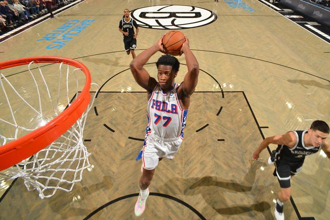 不仅马克西持续蜕变与成长,费城又用探花签淘到宝成功选到VJ埃奇库姆这名超级新星,开季至今场均拿到19.5分6篮板4.8助攻1.8抢断,三分命中率43.2%完全不像是一名新秀。