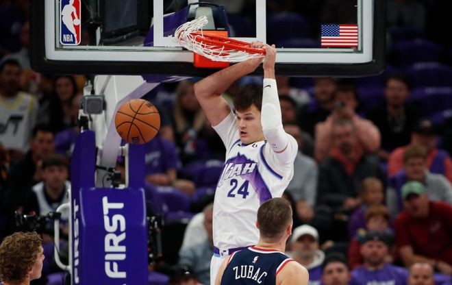爵士:马尔卡宁4记三分20分6篮板5助攻,凯斯勒7中7得到22分9篮板4助攻4盖帽,乔治16分9助攻,森萨博3记三分20分。