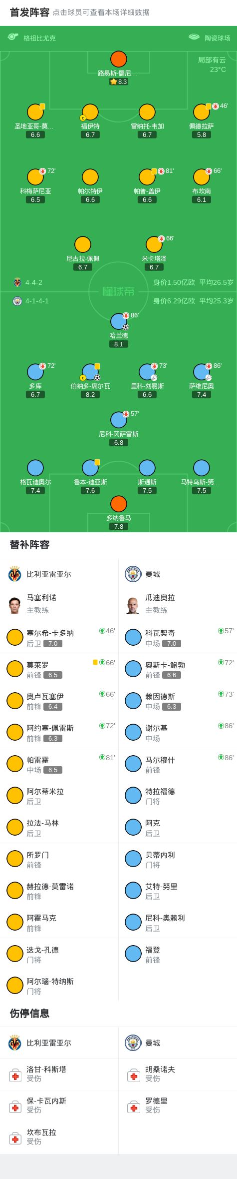 剑南春|曼城2-0客胜比利亚雷亚尔,哈兰德、B席建功