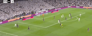 上半场结束前,皇马再度将比分超出。第43分钟,维尼修斯突破下底传中到后点,米利唐头球摆渡到门前,贝林厄姆包抄轻松推射得分,皇马2-1巴萨!