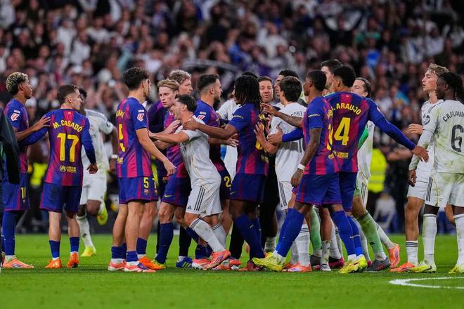 本赛季前9轮结束之后,皇马和巴萨形成了争冠的第一集团,皇马以2分领跑积分榜。考虑到上赛季皇马在西甲、西超杯和国王杯进行的四场比赛中全部不敌巴萨遭遇四连败,再加上赛前亚马尔的公开嘲讽引发皇马众怒,因此本赛季的首次交手,皇马自然希望能够终结这样的噩梦。