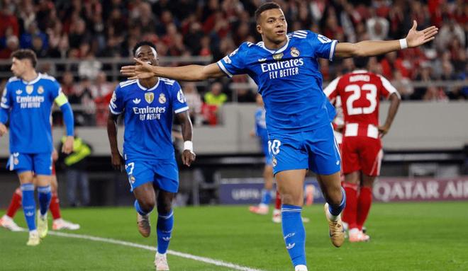 欧冠赛场,基利安·姆巴佩独中四元,帮助皇家马德里在客场以4-3险胜奥林匹亚科斯,成功终结了球队跨赛事三场不胜的颓势。希腊劲旅前锋奇基尼奥虽早早为东道主取得领先,但姆巴佩的统治级表现彻底扭转战局,同时让他登顶本赛季欧冠射手榜榜首。