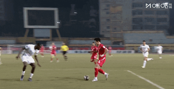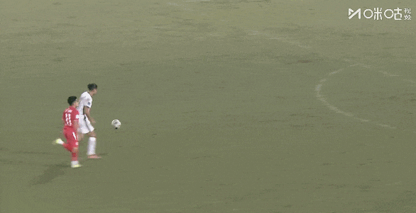 易边再战,第50分钟国安后防注意力不集中,河内公安前场界外球快发,阮庭北突入禁区后传中造险,江文豪抢先一步解围的同时被对手铲倒。